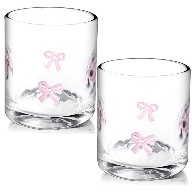 Sel Natural 2 Pcs Anthropologie Glass Juice Cups Bow Icon Bow 14oz Handblown Cocktail Glasses Aesthetic Drinking Glass Old Fashioned Iconic Glasses for Women Sister Friend Party (Pink)
