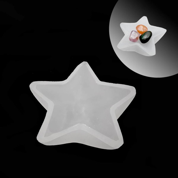 SEL-STRBWL Natural Selenite Crystal Carved Star Shape Charging Energy Bowl 4" Inches