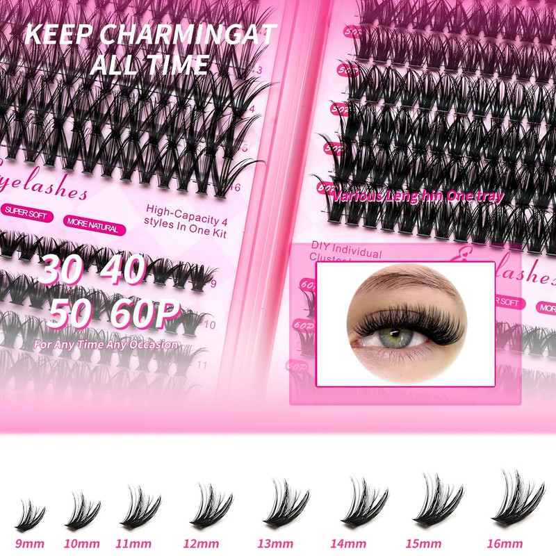 • Bring more possibility for you - Lash clusters kit provides different lengths and volume, mix and match as you like, your eye make-up will take on different styles, sexy, cute, luxurious, elegant and so on. Suitable for a variety of occasions, be it a dating, night out, a special occasion, or even a day at work; You'll achieve all these looks in no time.