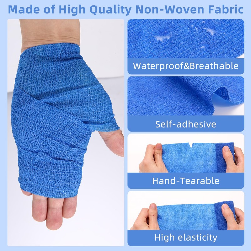 - 【Hochwertige Materialien】 Der selbstklebende Verband besteht aus hautfreundlichem und atmungsaktivem Vliesstoff mit einer wasserfesten Oberfläche, guter Luftdurchlässigkeit, ohne Klebstoff, mild und hypoallergen, mit hoher Elastizität, starker Dehnungskraft und einstellbarer Wickelfestigkeit. Es ist ein idealer selbstklebender Verband für Heilung und Genesung.