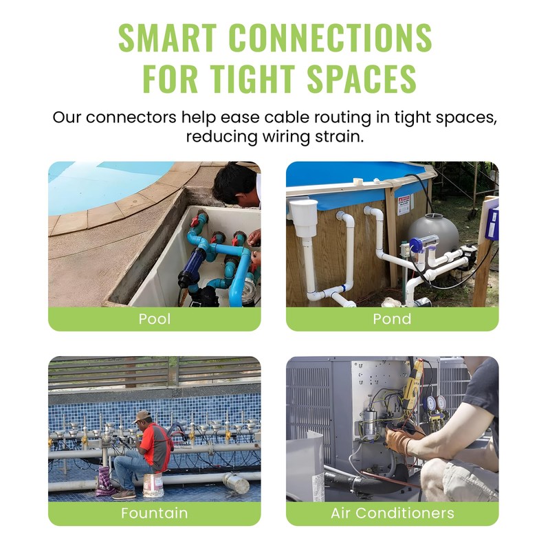 • Safe and Liquid Tight Design: These conduit pipe connectors provide secure and reliable liquid-tight connections, making them ideal for wet locations such as pools, ponds, fountains, and air conditioners.