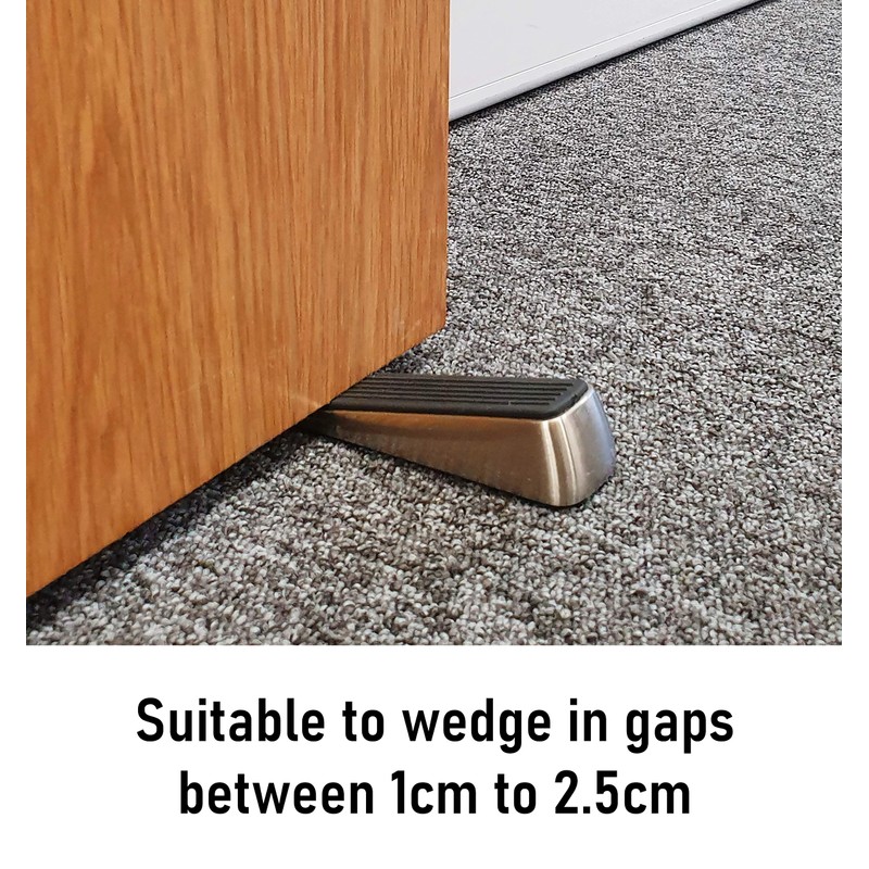 - The heavy duty solid rubber sole, the metallic heavy outer casing and raised rubber grooves on top of the door wedge, all help to create that extra secure grip on the door.