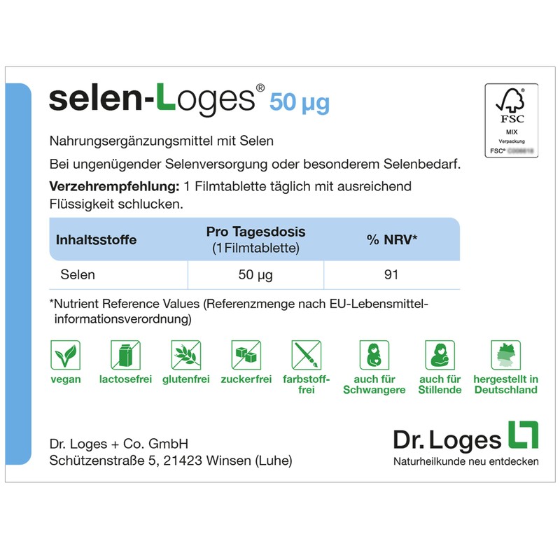 selen-Loges® 50 µg – 60 Film-Coated Tablets – Dietary Supplement with Selenium