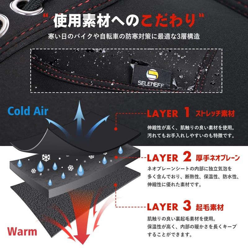 • Made of neoprene rubber with excellent waterproof and windproof properties, it can protect your hands from rain and snow in the cold winter and very warm. (If the amount of rain exceeds the waterproof performance, water may seep through the needle hole. )