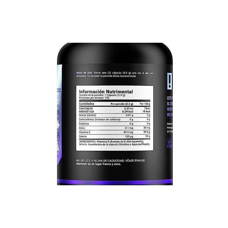 Selenio de 120 Cpsulas. Ingredientes naturales con Vitamina E para mayor abso...