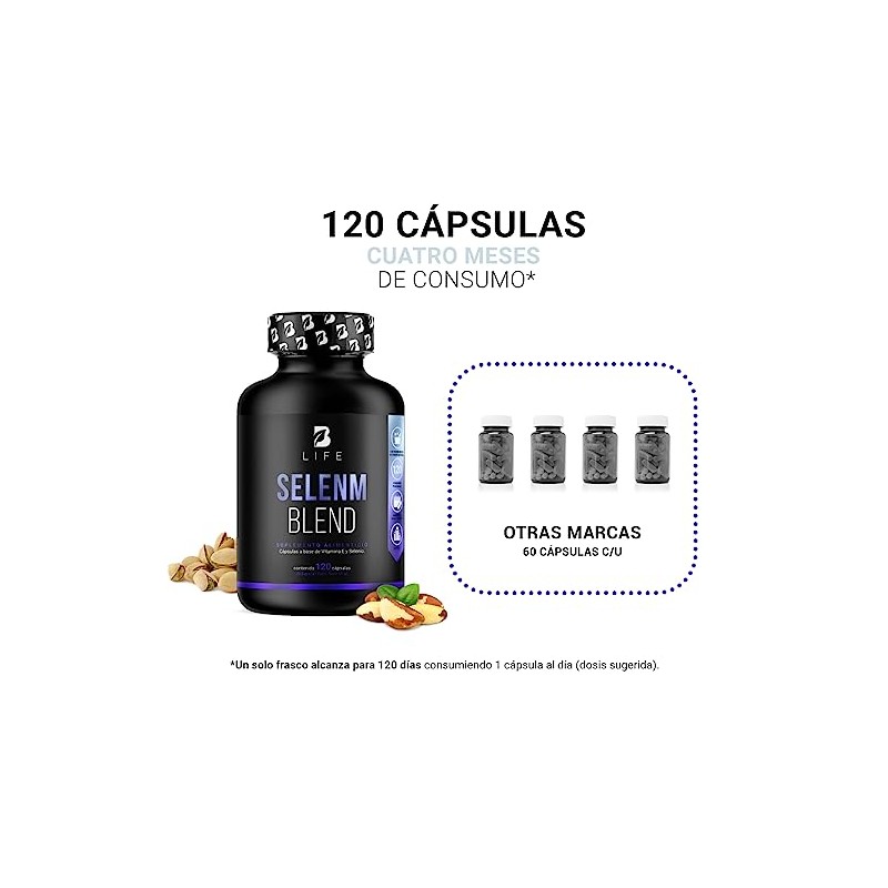 Selenio de 120 Cpsulas. Ingredientes naturales con Vitamina E para mayor absorcin. Selenm Blend B Life.