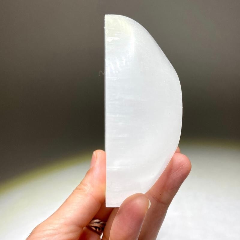 This listing is for 1 (ONE) Selenite Charging Bowl chosen at random. Available in 4 sizes Extra small approx. 2.5 inches in diameter Small approx. 3.5 inches in diameter Medium approx. 4 inches in diameter Large approx. 4.75 inches in diameter Selenite is a variety of gypsum, a soft mineral with a distinctive white or transparent appearance. There are several benefits to using selenite. Firstly, selenite is known for its cleansing and purifying properties. It is believed to have the ability to clear negative energy and promote a sense of peace and tranquility. When placed in a room, selenite can help to create a calming and harmonious atmosphere. Additionally, selenite is thought to be a powerful tool for spiritual and emotional healing. It is said to help individuals connect with their higher self and access higher states of consciousness. It can also assist in removing blockages and negative thought patterns, promoting a sense of clarity and well-being. Another benefit of selenite is its ability to promote good sleep. When placed under a pillow or near the bed, selenite is said to promote peaceful and restful sleep, and can also help to prevent nightmares. Finally, selenite is also a useful tool for meditation and visualization. Its calming energy can help to quiet the mind, making it easier to focus and access deeper states of awareness. Overall, selenite is a versatile mineral that can offer a wide range of benefits to those who use it. Whether for its purifying properties, its ability to promote good sleep, or its role in spiritual and emotional healing, selenite is a valuable tool for those seeking to improve their well-being. It is important to note that the benefits of gemstones are based on traditional beliefs and may not have been scientifically proven.