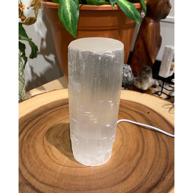 Selenite Lamp XL White Natural Crystal Light LED Cord Cylinder Tower Crystal Lamp - Handmade by mmCrystals™