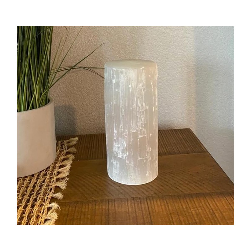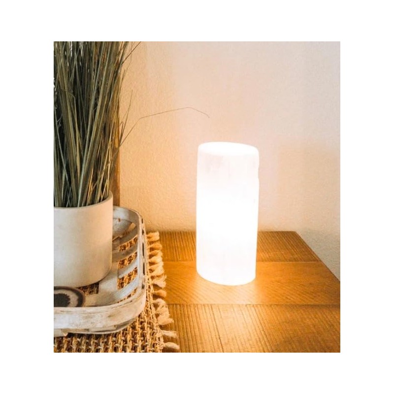 - These Cylinder Lamps are handmade from rough, natural selenite