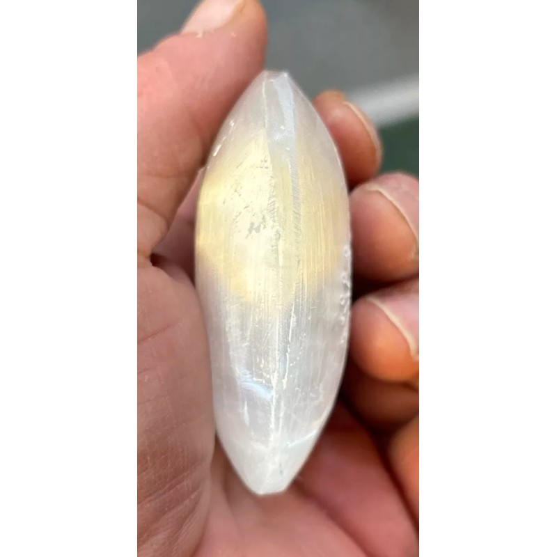 This Selenite Palm Stone Lotus is a beautiful addition to any crystal collection. Its unique shape and texture make it a must-have for those who appreciate the natural beauty of crystals. The palmstone is perfect for meditation and healing, bringing a sense of calmness and serenity to any space.