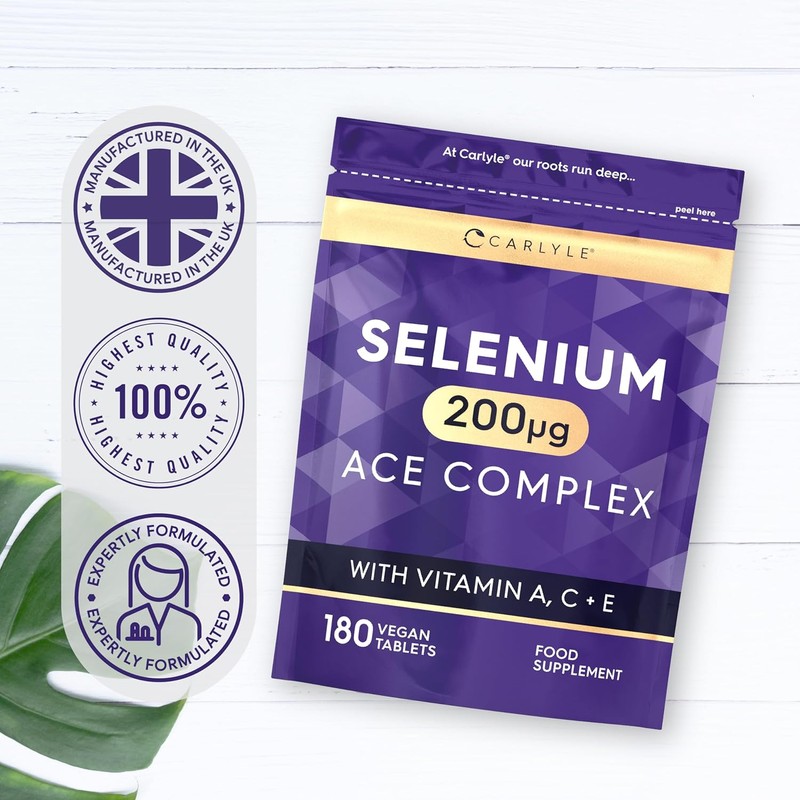 Selenium Supplements 200mcg | Selenium ACE with Vitamin A, C and E | 180 Vegan Tablets | High Strength Selenium Supplement | Essential Trace Mineral | Carlyle