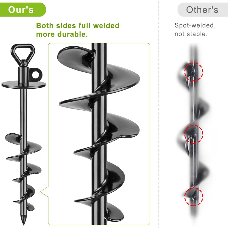 - These ground anchors have a unique design that penetrates the soil like a screw penetrates wood, hold strongly no matter hard soil or sandy island.