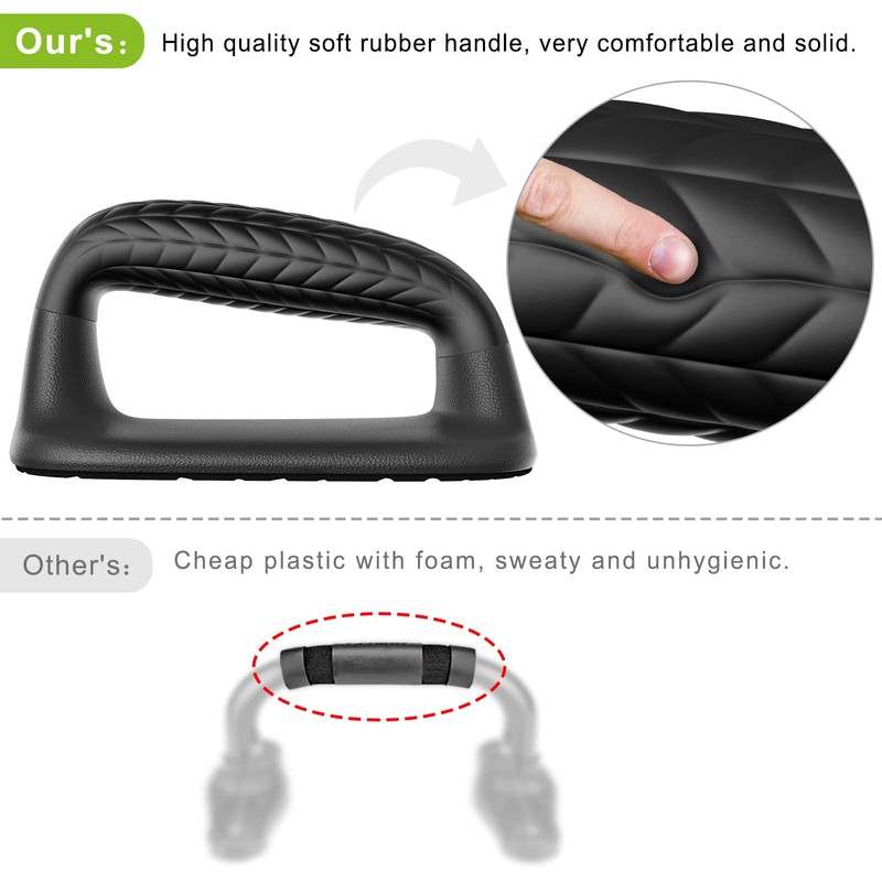 - Push up handles are made of high quality soft rubber with ergonomic design, make it become easy for you to do push up training, just like a piece of cake.