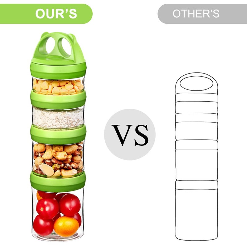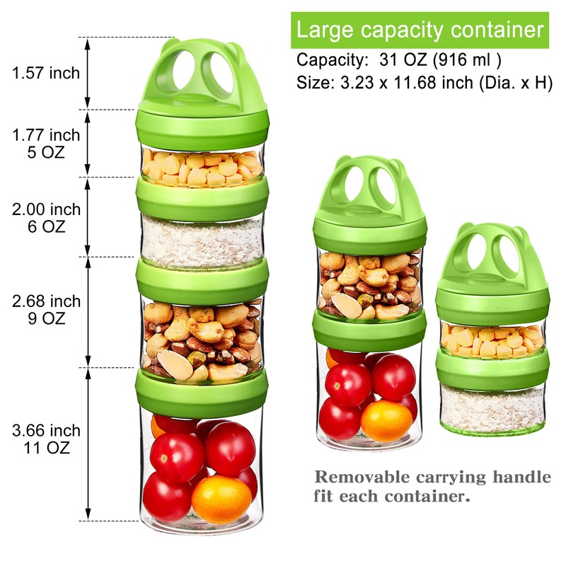 - Contenedores apilables entrelazados para llevar botanas saludables, polvo, frutas y bebidas en casa o en movimiento.