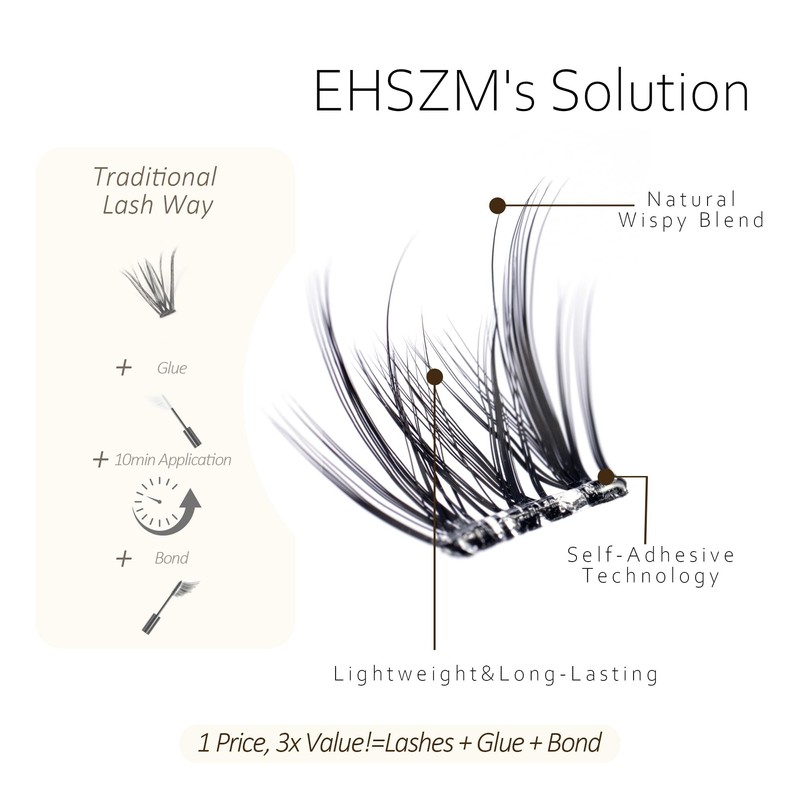 - ✅ 0.05mm Ultra-Thin & 50% Lighter “Featherlight clusters with invisible adhesive strip – weighs less than a single natural lash for all-day comfort without pressure.”