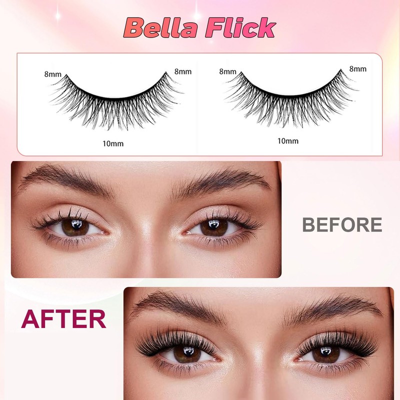 Crafted with soft crisscross synthetic fibers these glueless lashes deliver voluminous yet feathery texture without the heaviness of traditional falsies The flexible thin band ensures a comfortable fit for all eye shapes making them ideal for daily wear dates weddings or photoshoots
