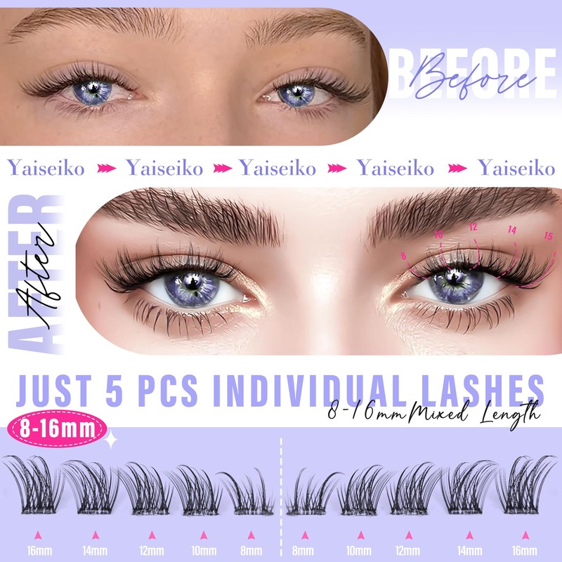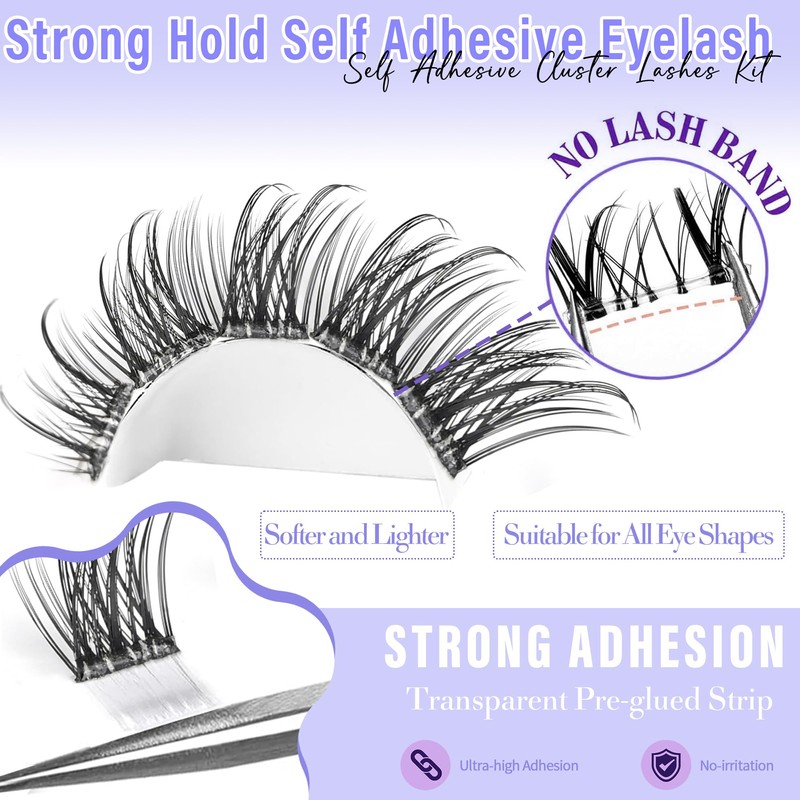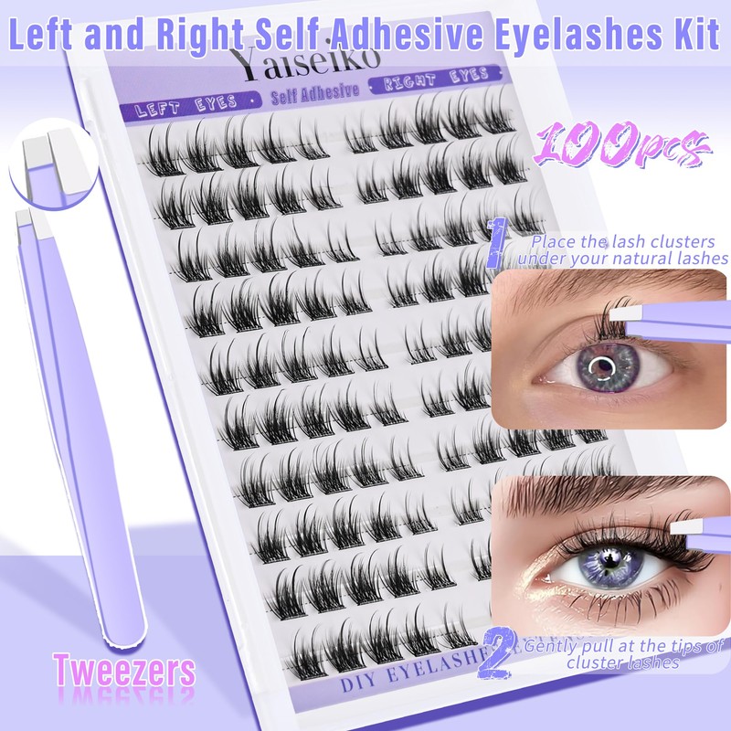 • 【Premium Self Adhesive Eyelashes Kit】Our self adhesive lashes are made with super fine quality silk fiber,contains 100 pcs 8-16mm pre - glued lashes clusters and 1 lash applicator.Simplify your beauty routine with our pre-sorted left and right eyelash clusters
