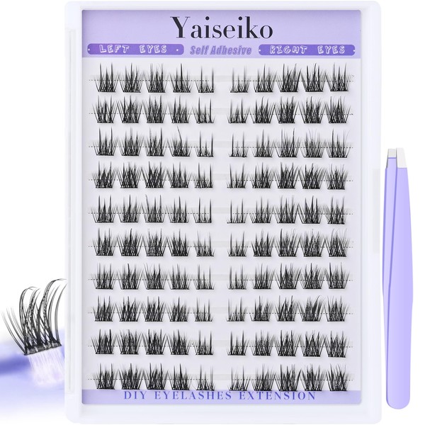Self Adhesive Lash Clusters Natural Look Manga Self Adhesive Lashes Clusters No Glue Needed Left & Right Eye Press on Lashes Kit by Yaiseiko(100Pcs,8-16MM)