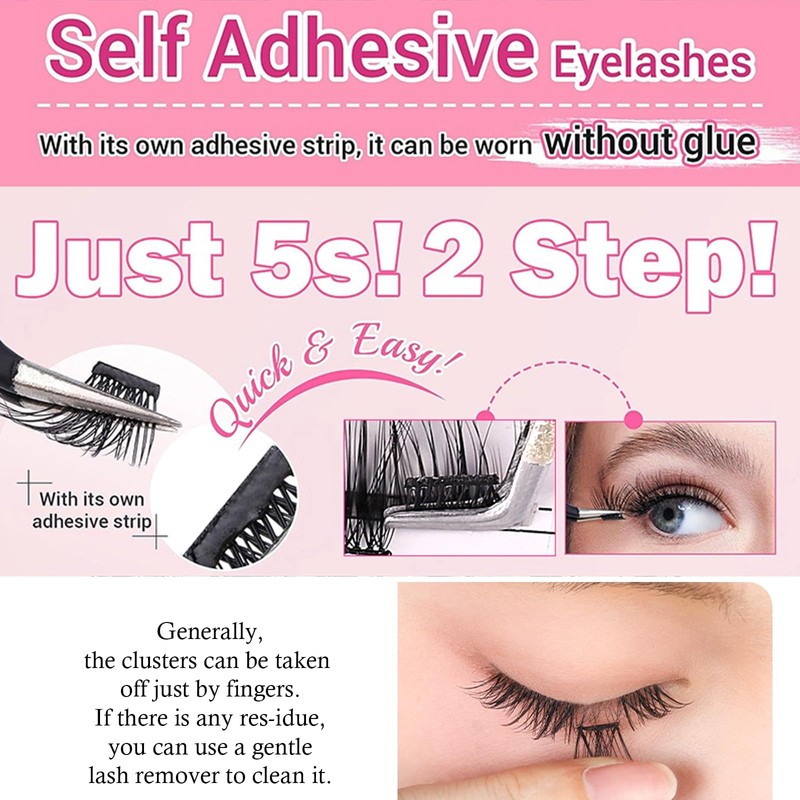 - Quick Press On: Pre glued eyelashes clusters are used for super quick application! Perfect for busy women or anyone who wants effortless beauty without the fuss of glue. Just lash & dash!