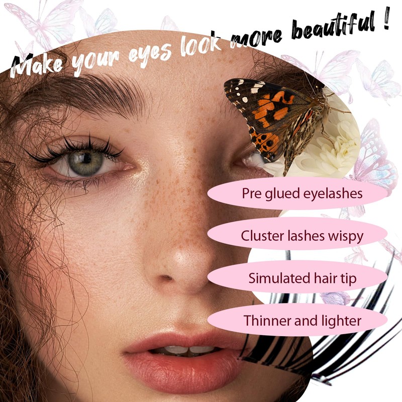 - Long-lasting Effect & Easy to Remove: Update adhesive strip can stick firmly to your natural lashes, don't worry about these pre-glued cluster lashes falling off. You can just take the individual lashes off with your hands, no lash remover is required, giving you easier applying & removing experience
