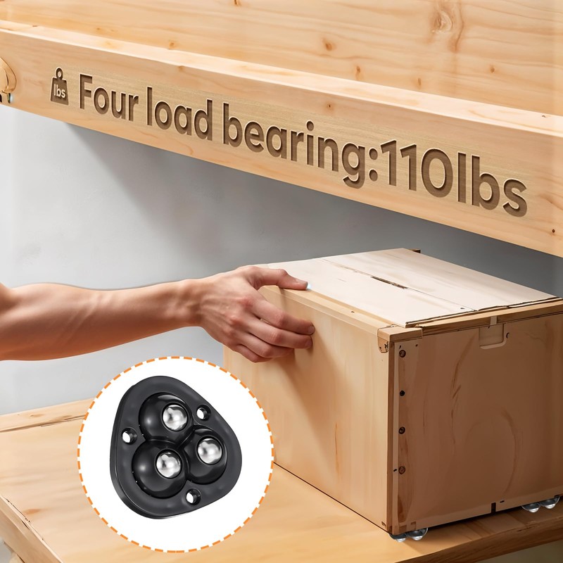 - SET OF 32 BEARING 220 POUNDS: The single wheel can withstand a load capacity of 27.5 pounds. Four wheels together provide a maximum load capacity of 110 pounds. You can also add more wheels according to your needs. It should be noted that the weight of the load-bearing range will not crush the small wheels, although there is a possibility of scratching the wooden and plastic surface. Please be careful to prevent scratching your countertop and floor.
