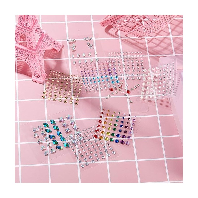 Self Adhesive Rhinestone Stickers Face Gems Stick on for Face Nail Body Makeup Pack of 1 Gray