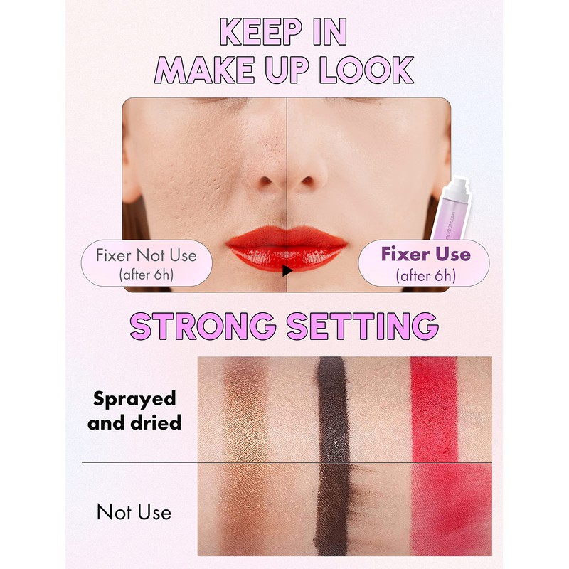 - LONG-LASTING MAKEUP SETTING: Our makeup fixing spray delivers just the right dose of dewiness, while locking in your makeup for long hours. It forms 2 layers of coating on top of your makeup, not only fixing it but preventing creases and smudges.