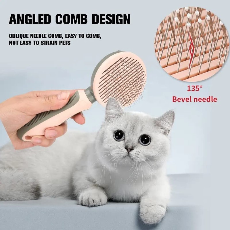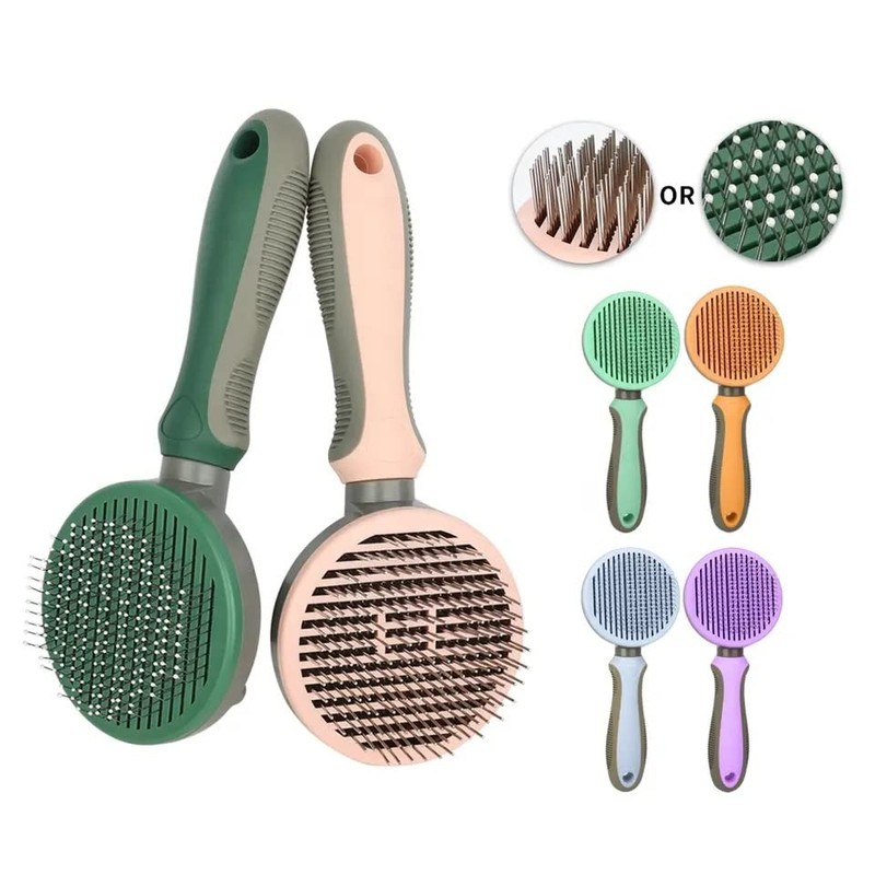 Self Cleaning Pet Pin Brush Cat Dog Grooming Slicker Brush Color Silver Round Curved Needle for Shedding