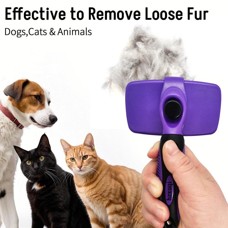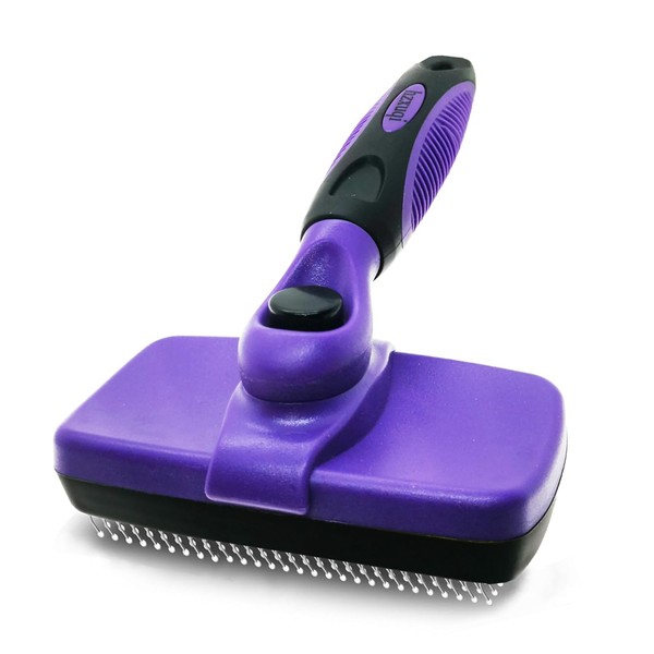 Self Cleaning Pet Shedding Slicker Brush, Cat Shedding Grooming, One-Click Hair Removal, Defur Loose Floating Hair, Dog Shedding, Pet Massage, Durable Anti Static, Purple, Small