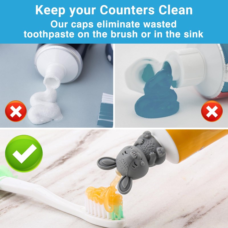 - Perfect for Kids - Making the perfect addition to the kids bathroom, each toothpaste cap dispenser allows the toothpaste to be easily squeezed out to evenly coat the toothbrush. Eliminates messy blobs of the kids' toothpaste on the counter and sink.