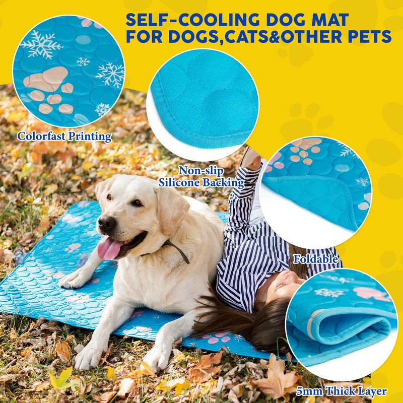 Self-Cooling Mat for Dogs Extra Large, 59'' x 39'' Washable Dog Ice Silk Self Cooling Mat for Indoor & Outdoor Dog Mat with Cooling Pad Non-Slip&Foldable Summer Reusable Pet