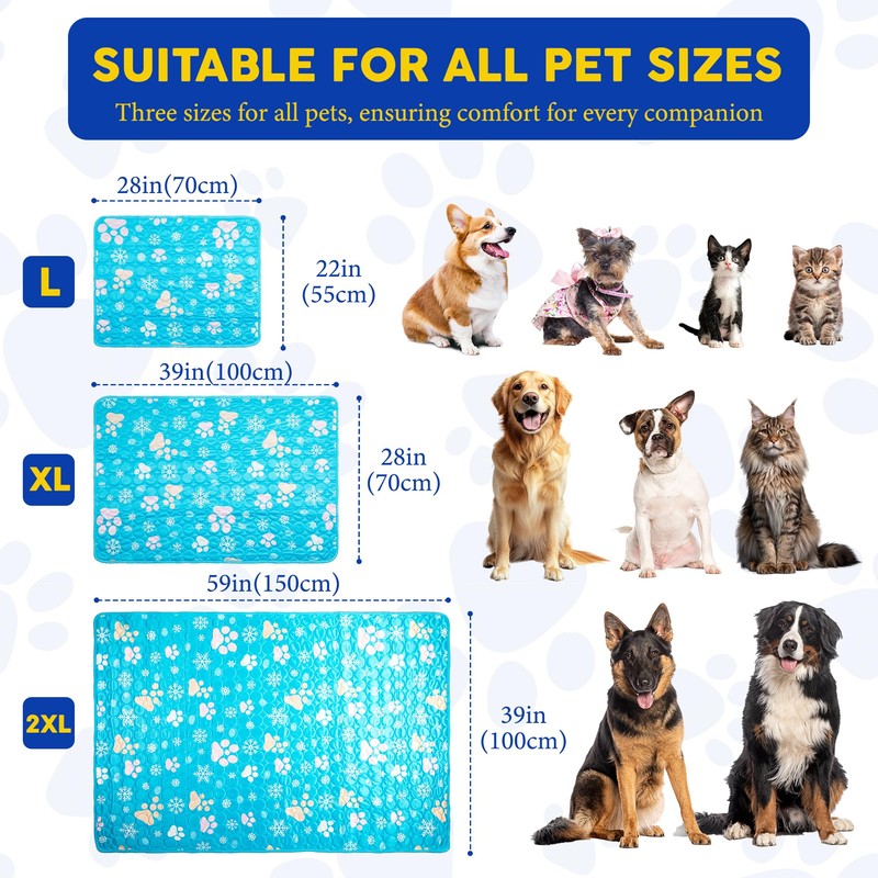 - 【The Easiest Way to Use】:The cooling mat for dogs is different from most pet cooling mat on the market,no water, electricity, or refrigeration needed,only to put the dog cooling mat on the floor or sofa and keep the pet on it. The dog cooling pad can absorb your pet's body heat,feeling cooling when touching the surface.