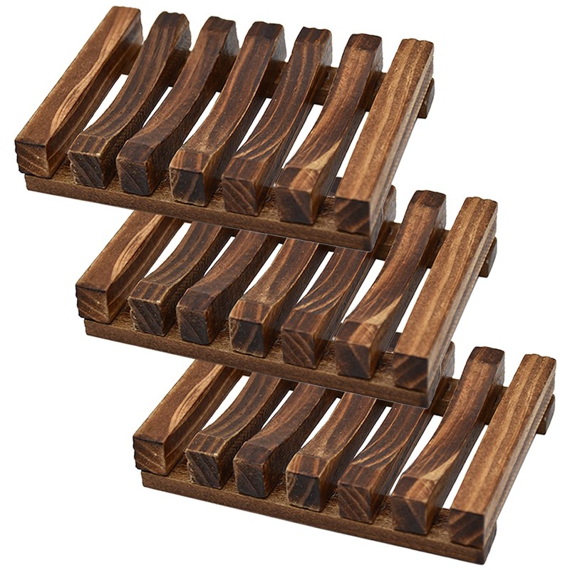 Self Draining Soap Dish Holder/ Tray, 3 Pcs Natural Wooden Soap Saver, Soap Case for Shower, Bathroom, Extend Soap Life, Keep Soap Bars Dry Clean & Easy Cleaning(Charcoal)