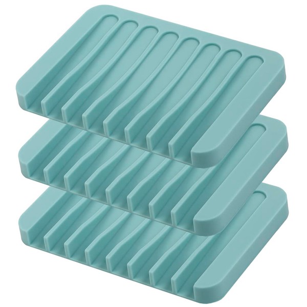 Self Draining Soap Dishes, 3 Pcs Silicone Soap Saver, Waterfall Drainer Soap Holder for Bathroom, Extend Soap Life, Keep Soap Bars Dry Clean & Easy Cleaning (Teal)