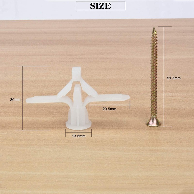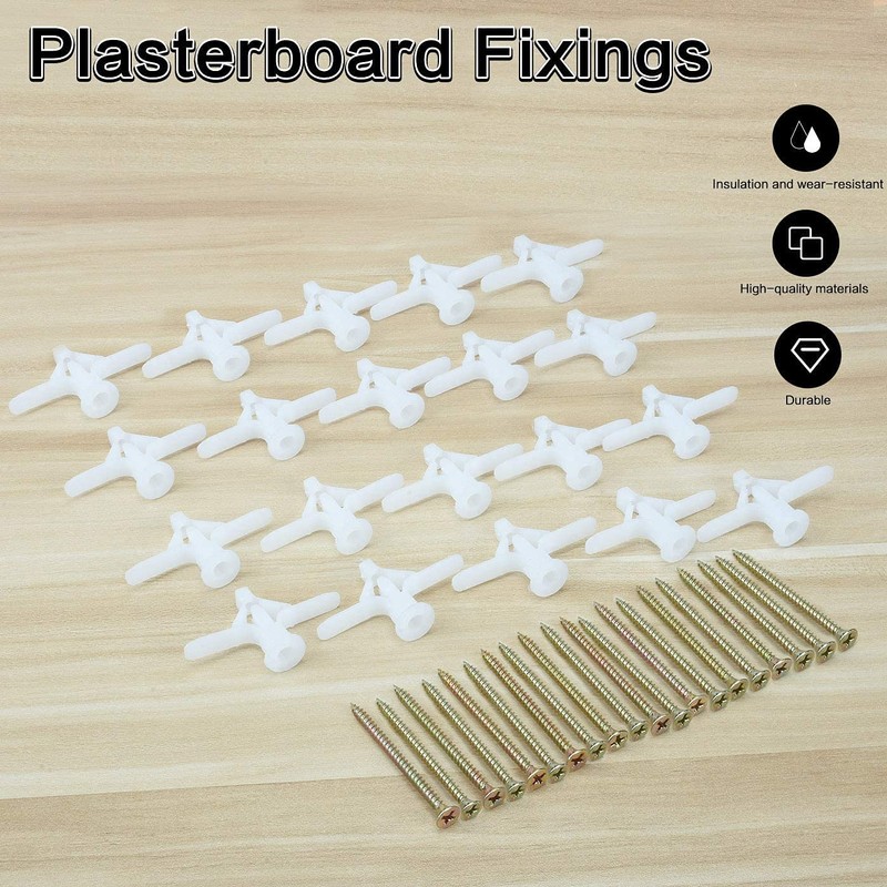 Quantity: 20 pieces plastic anchors + 20 pieces screw (total 40 pieces plaster dowels)