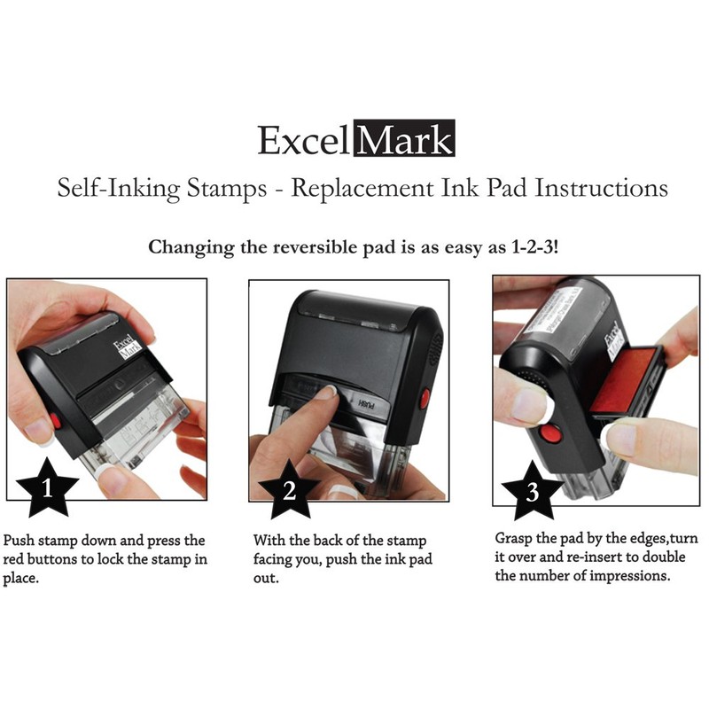 - Features a two-sided ink pad that doubles the number of impressions and the useful life of the pad
