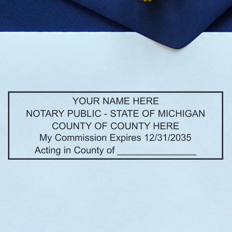 Self-Inking Michigan Notary Stamp, Notary Stamp Michigan, Rectangular Imprint, Sized 7/8" x 2-1/4", Up to 5K Imprints, 11 Ink Colors, Easy Press and Print Stamping, Michigan Notarial Stamp