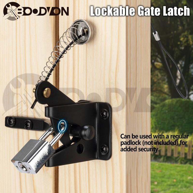 - 【Gravity Self Locking Design】 BOODVON self closing gate latch with cable pull release, the latch releases automatically with a light pull. The latch uses gravity to ensure the door is closed at all times, both for privacy and to prevent pets from escaping.