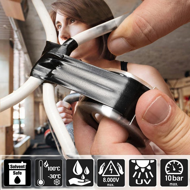 - [Wide Application] Stretch and seal tape is widely used on outdoor antenna coax connector, pipe and hose sealing and patching, electrical cable and plug repair, insulation, protection and extension, plumbing and duct repair, Automotive and RV hose repair, marine and garden applications, hand tool and sporting product grip and handlebar, other emergency repair and so on.