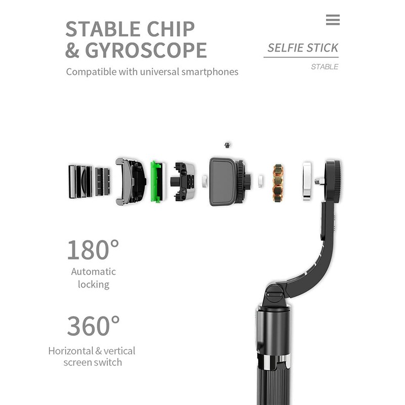 Selfie Stick Gimbal Stabilizer, 360° Rotation Tripod Portable Phone Holder L08 Smartphone Stabilizer Tripod Selfie Stick Gimbal for Smartphones Vlog Video Recording Black