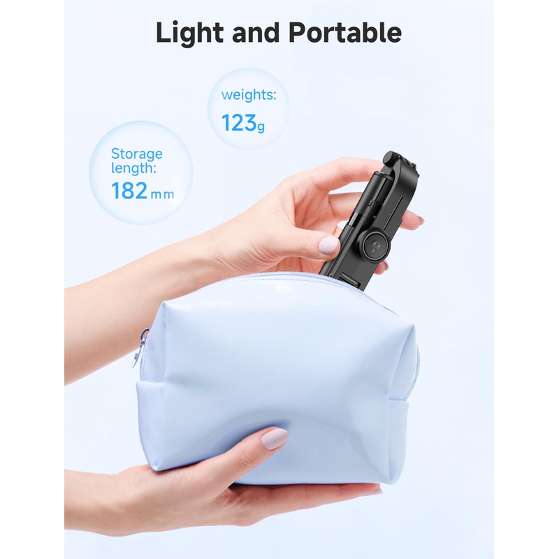 • EXTENDABLE & PORTABLE SELFIE STICK: Selfie stick phone tripod is designed the hidden retractable design, can extend a long way: 26.45' (67.2 cm), let you capture with a larger field of view, great for selfies, group photos, video shooting, social life. It is extremely compact when folded up, only 7.28' (18.5cm) and a weight of 121g, you can easily pack it in your backpack and take it with you wherever you go, making it the perfect travel companion it ideal for outdoor