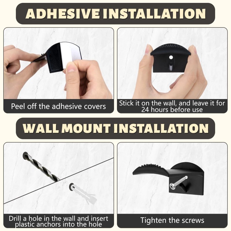 Flexible Installation (Adhesive or Screws): Tailor your setup to any room: Use the strength adhesive for quick, damage-free mounting o-n smooth surfaces (holds 3 lbs) or secure permanently with screws. Note: Our high-strength adhesive works best o-n smooth, non-porous surfaces. Avoid wallpaper, textured walls, or uneven surfaces. When using o-n drywall/painted walls, remove carefully to prevent surface damage