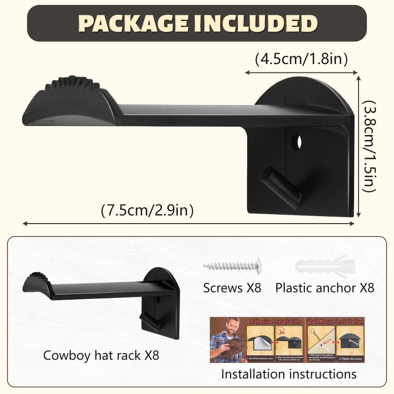 Package Included: 8X Cowboy hat rack, Adhesive and 8Xscrews