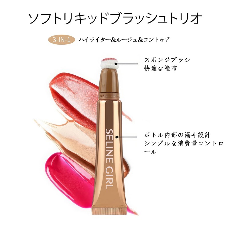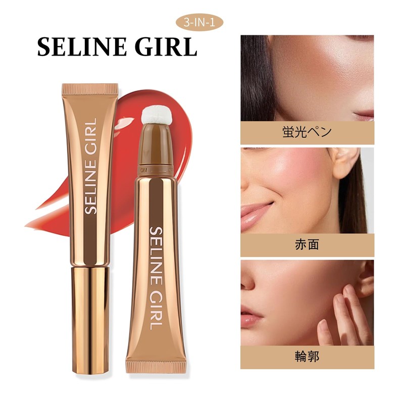 SELINE GIRL ハイライト&ブラシ&コンター 3-in-1 リキッドビューティーワンド 8色選べる スポンジブラシ付き 自然な仕上げ #07テラコッタ