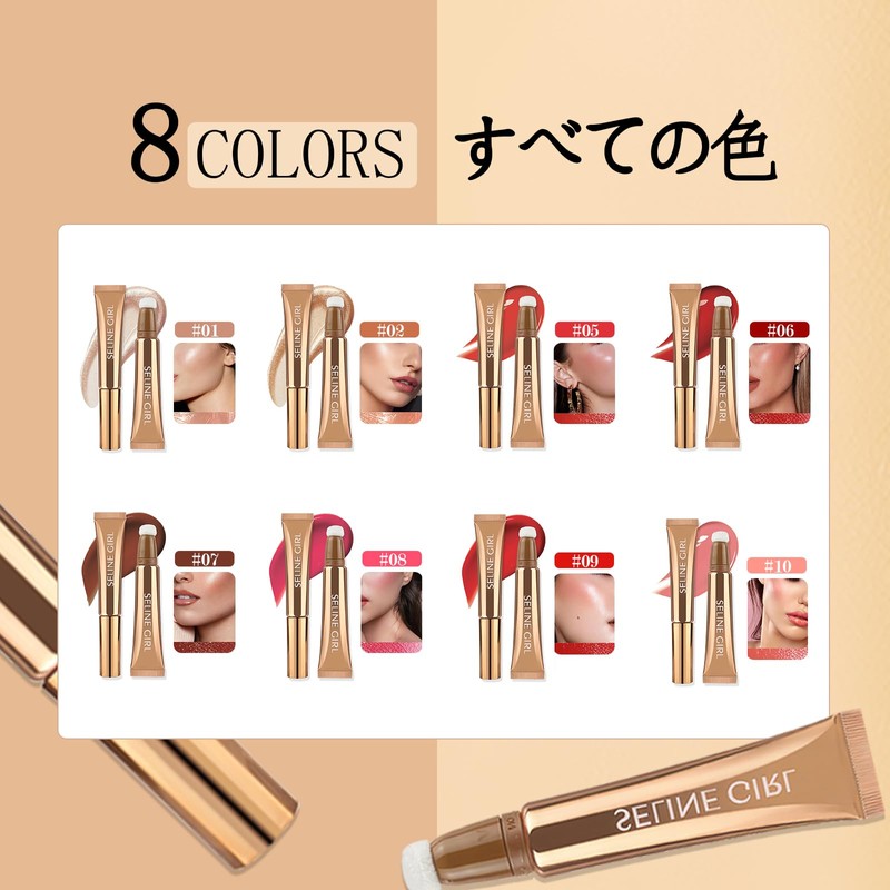 SELINE GIRL ハイライト&ブラシ&コンター 3-in-1 リキッドビューティーワンド 8色選べる スポンジブラシ付き 自然な仕上げ #10ダストピンク