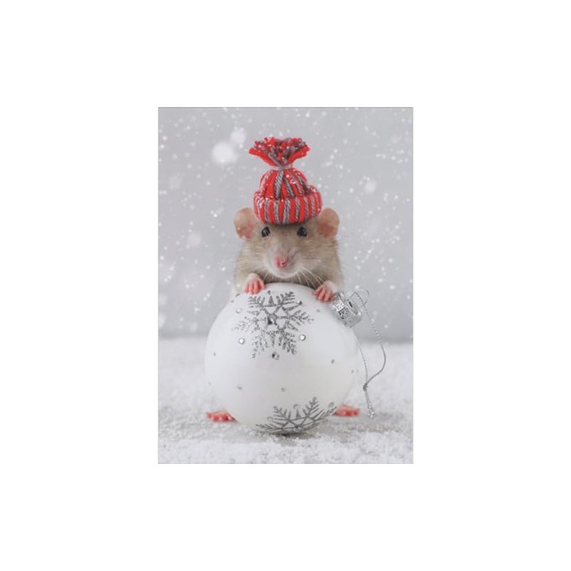 Sellers Publishing RSVP Mouse Holding White Ornament with Silver Snowflake Christmas Card for Someone Special