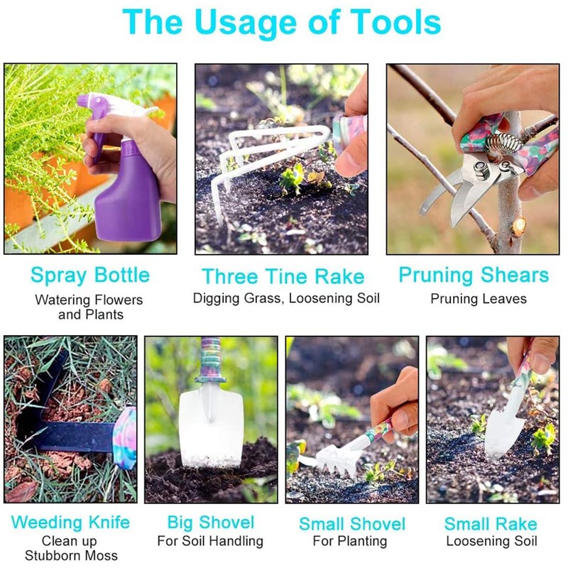 - 【best gift】 - The flower pattern on the handle looks very stylish. These gardening tools are lightweight and can be carried around, making them suitable for almost any age, especially for the elderly with arthritis