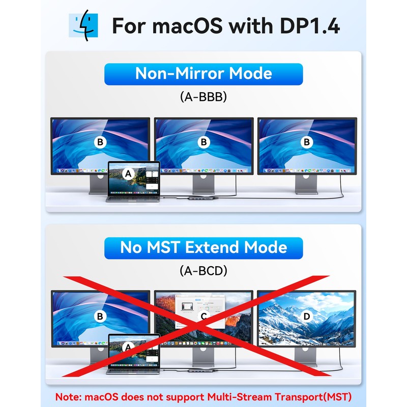 - Triple display docking station: the docking station dual HDMI helps you easily achieve dual monitor and triple monitor display, the HDMI1 resolution can be up to 4K@60Hz, HDMI2 up to 4K@30Hz and VGA up to 1080P. HDMI resolution is 1080P@60Hz at dual or triple display with VGA, and will be up to 4K@30Hz when two HDMI displays are displayed simultaneously (DP1.4). Note: Only the Windows system supports MST, macOS does not support it due to the macOS system limit.