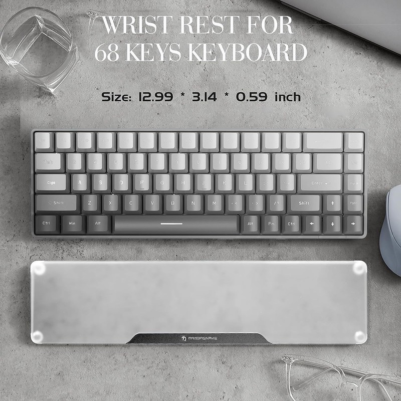 • 【Transparent Acrylic Wrist Pad】The 60% Keyboard Wrist Support is made of clear premium acrylic material which supply lightweight, comfortable, durable and skin-friendly touch, not easy to out of shape, and ideal for longer hours of use.