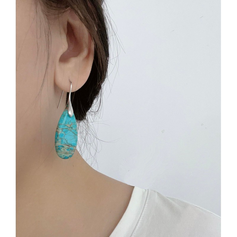 SELOVO Women Girls Blue Turquoise Stone Fishhoop Dangle Drop Earrings Silver Tone